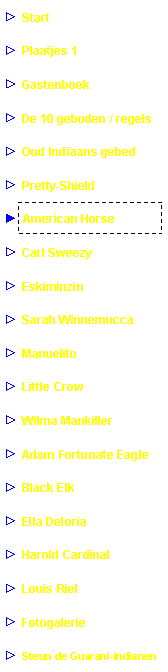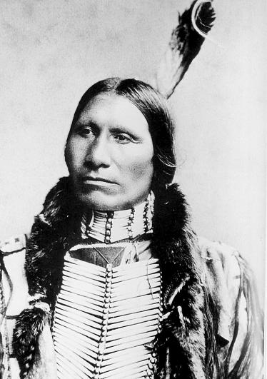 De Oglala Lakota American Horse (1840-1908) kon dankzij zijn kwaliteiten als spreker en onderhandelaar opklimmen tot aanvoerder. Als krijger nam hij in de oorlog om de Bozeman Trail deel aan het Fettermangevecht in december 1866 - één van de grootste nederlagen van het leger. In 1890 verzette hij zich tegen de Ghost Dance en haalde Big Foot over terug te keren naar het Pine Ridge-reservaat, waar de groep bij Wounded Knee werd afgeslacht. In 1891, op één van zijn reizen naar Washington DC, hield American Horse een bewogen toespraak over het bloedbad. Zijn verhaal droeg bij aan de verbetering van de omstandigheden voor zijn volk. |