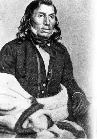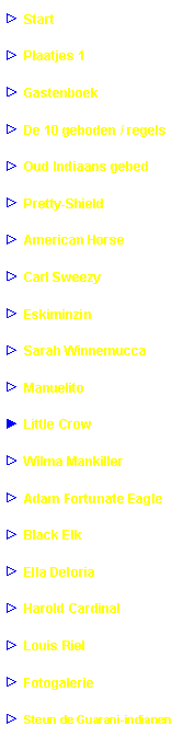 Litlle Crow (circa 1810-1863), een Dakota, was in 1834 opperhoofd van de Mdewakanton geworden. Hoewel hij door veel Dakota werd veroordeeld omdat hij de levenswijze van de blanken had overgenomen, vroeg men hem aan het begin van de opstand op 18 augustus 1862 om hen aan te voeren. Hieronder volgt een stukje van de toespraak die hij bij die gelegenheid hield. Litlle Crow raakte bij de door hem aangevoerde aanval op Fort Ridgely gewond, maar kon toch aan de meeste gevechten deelnemen. Nadat zij waren verslagen, vluchtte Litlle Crow naar Canada om een jaar later in Minnesota terug te keren. Hier werd hij door een kolonist gedood. |